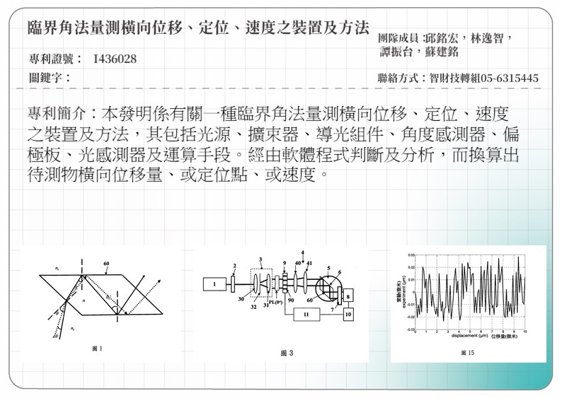 臨界角法量測橫向位移、定位、速度之裝置及方法THE TRANSVERSE LOCATION, DISPLACEMENT, AND VELOCITY MEASUREMENTS BY USES OF THE CRITICAL ANGLE DEVICE AND METHOD