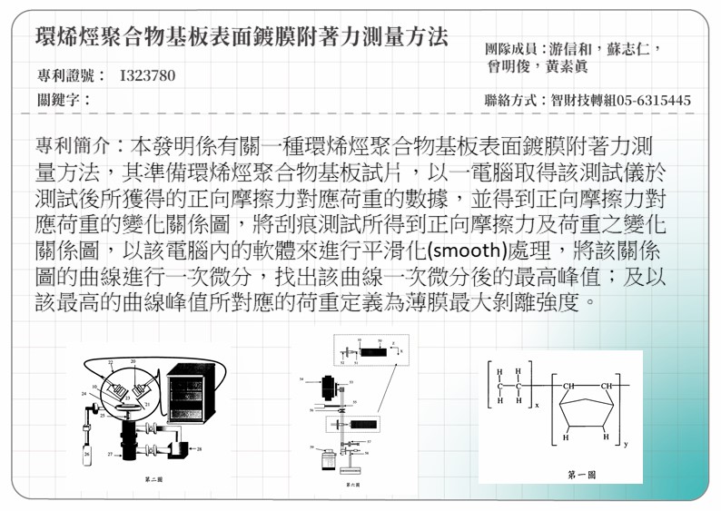 環烯烴聚合物基板表面鍍膜附著力測量方法A MEASURING METHOD FOR ADHESION BETWEEN CYCLIC OLEFIN COPOLYMER(COC) SUBSTRATE AND COATING LAYER