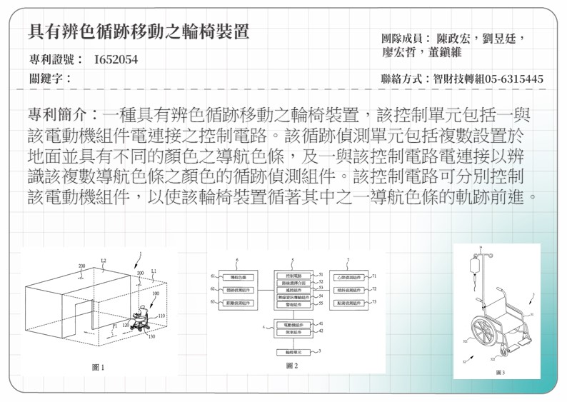 I652054 具有辨色循跡移動之輪椅裝置A WHEELCHAIR DEVICE WITH A RECOGNIZING COLOR AND MOVING