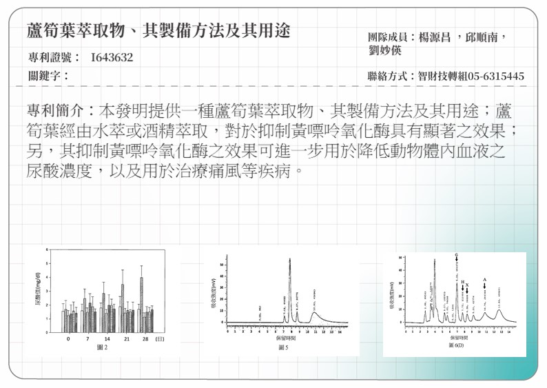 I643632 蘆筍葉萃取物、其製備方法及其用途EXTRACT OF ASPARAGUS OFFICINALES LEAF, THE EXTRACTION METHOD AND THE USE THEREOF