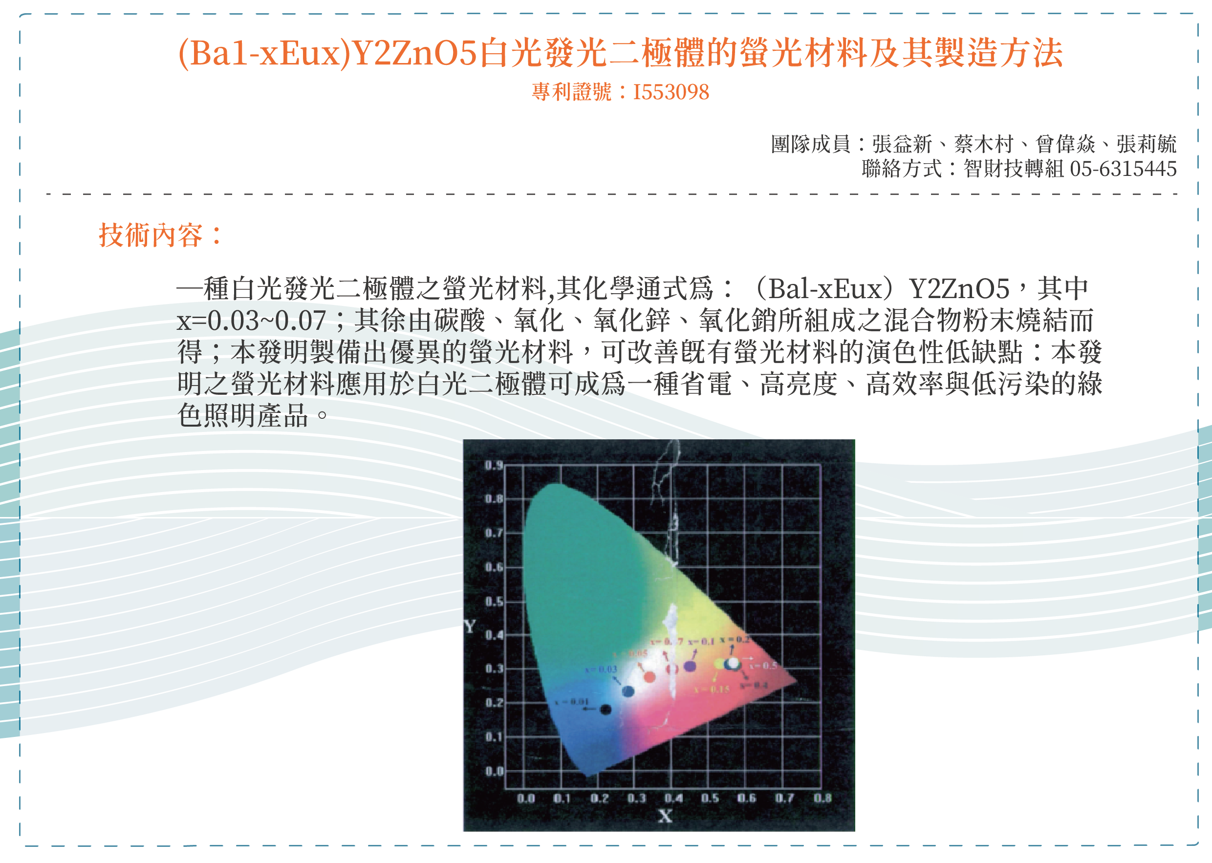 (Ba1-xEux)Y2ZnO5白光發光二極體的螢光材料及其製造方法(Ba1-xEux)Y2ZnO5phosphors and producing method thereof