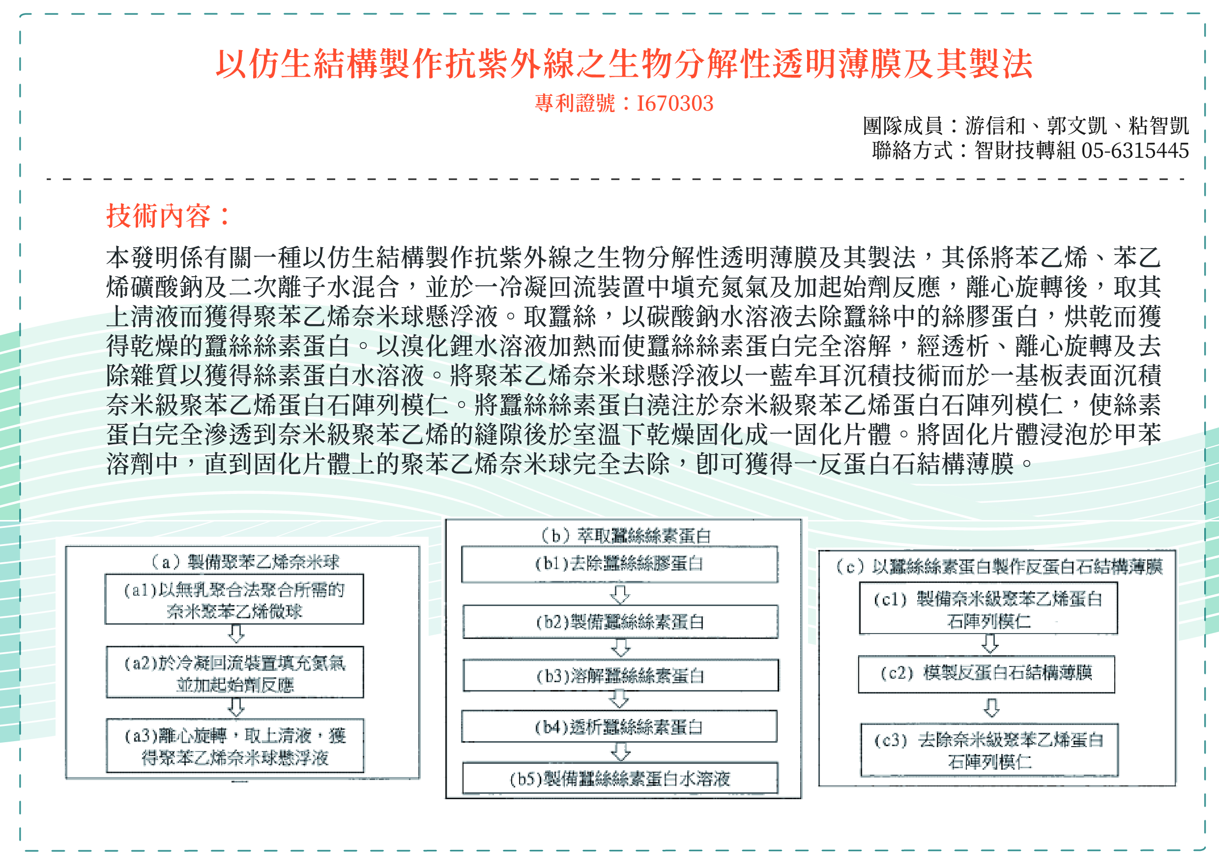 以仿生結構製作抗紫外線之生物分解性透明薄膜及其製法ANTI-ULTRAVIOLET BIODEGRADABLE TRANSPARENT FILM BASED ON BIONIC STRUCTURE AND METHOD FABRICATING THE SAME