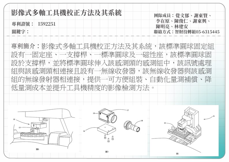 影像式多軸工具機校正方法及其系統IMAGE THREE-DIMENSIONAL SPATIAL ERROR DETECTION METHOD AND SYSTEM
